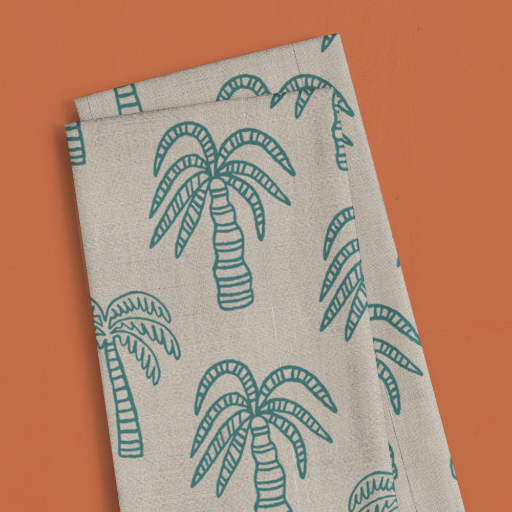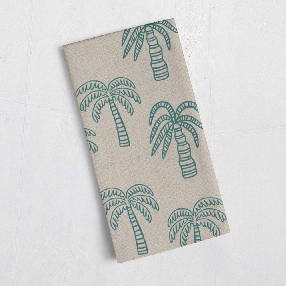 Linen Tea Towel: Palm Oasis, Teal – 1 PC